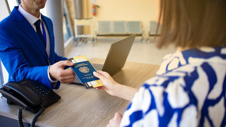 The passenger who has already passed check-in goes through screening with the hand baggage.